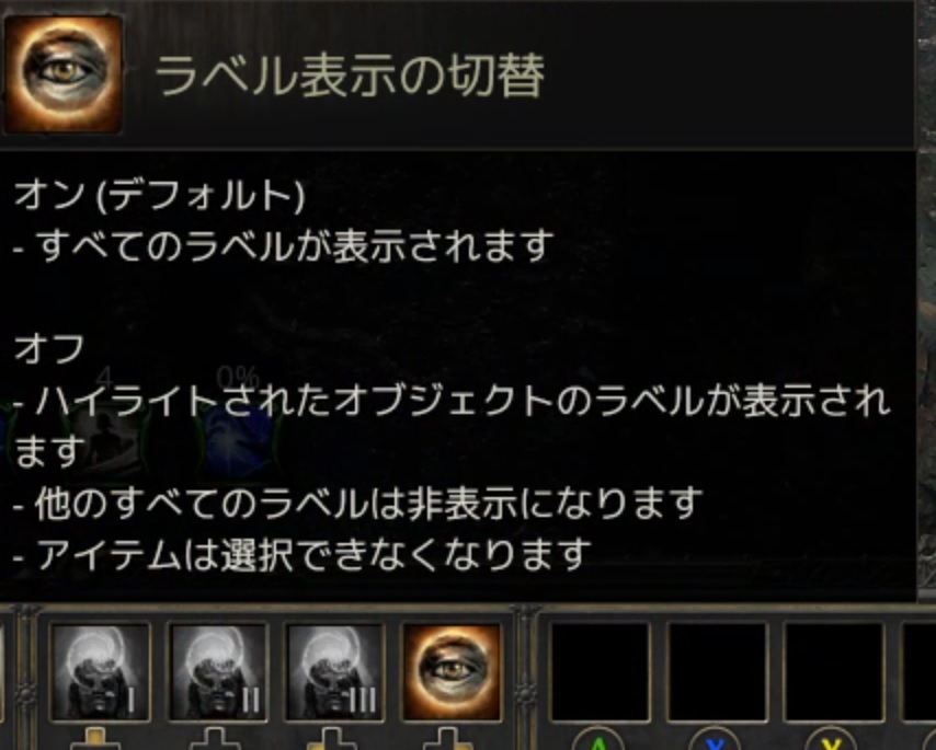 アイテムなどの詳細を確認したい場合は、アイテムにカーソルを合わせて「右スティック押し込み」です(これはスキルなどでも同様)
