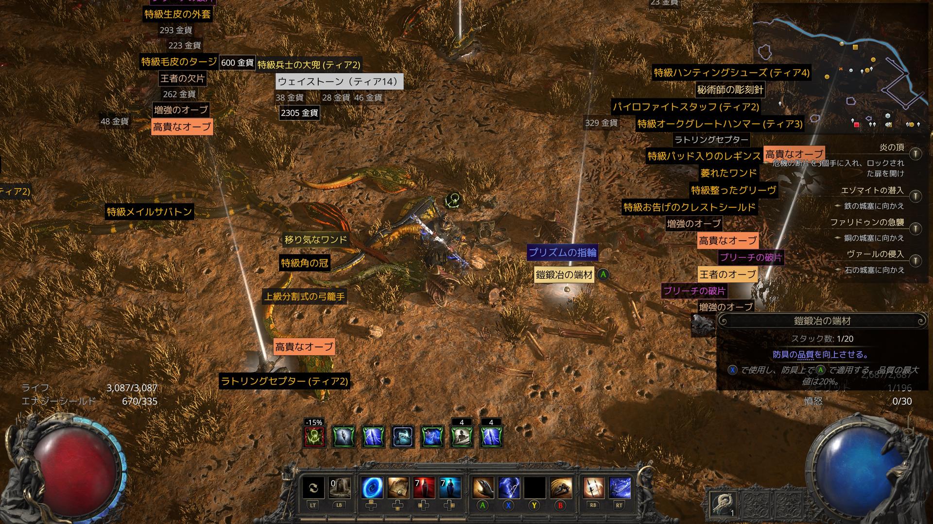 特にトレードの際などに頻繁に使われる操作です(高貴なオーブを分割など)