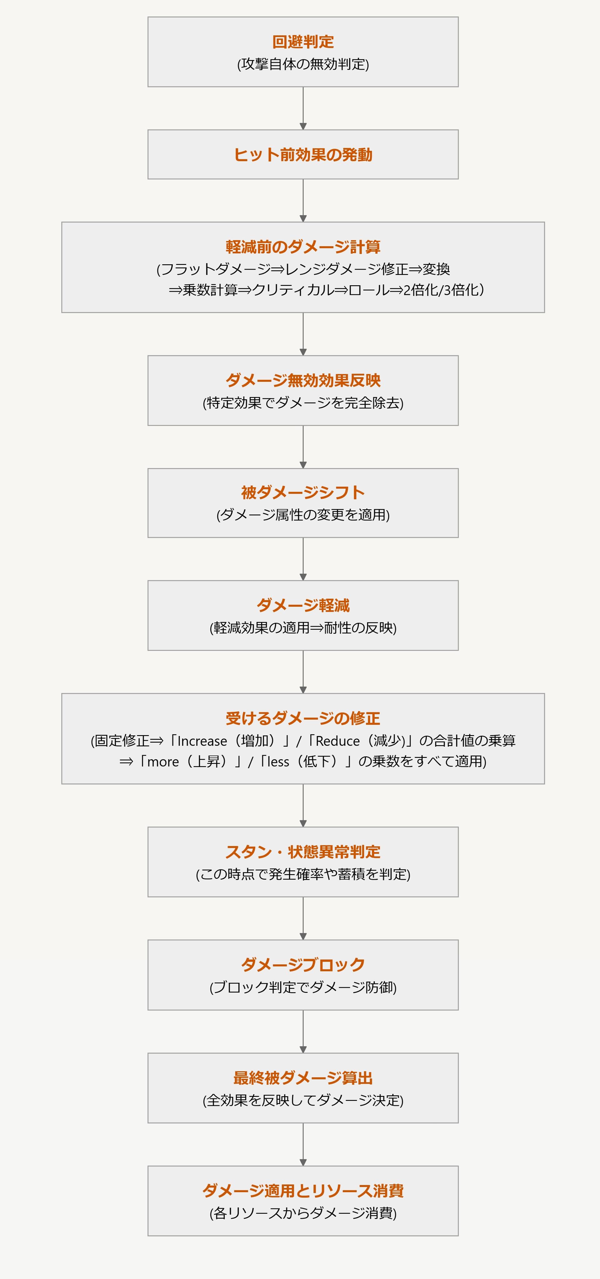 残ったダメージは次のリソースから消費され、一部の効果では特定のリソースをバイパスして、直接次のリソースに適用されます