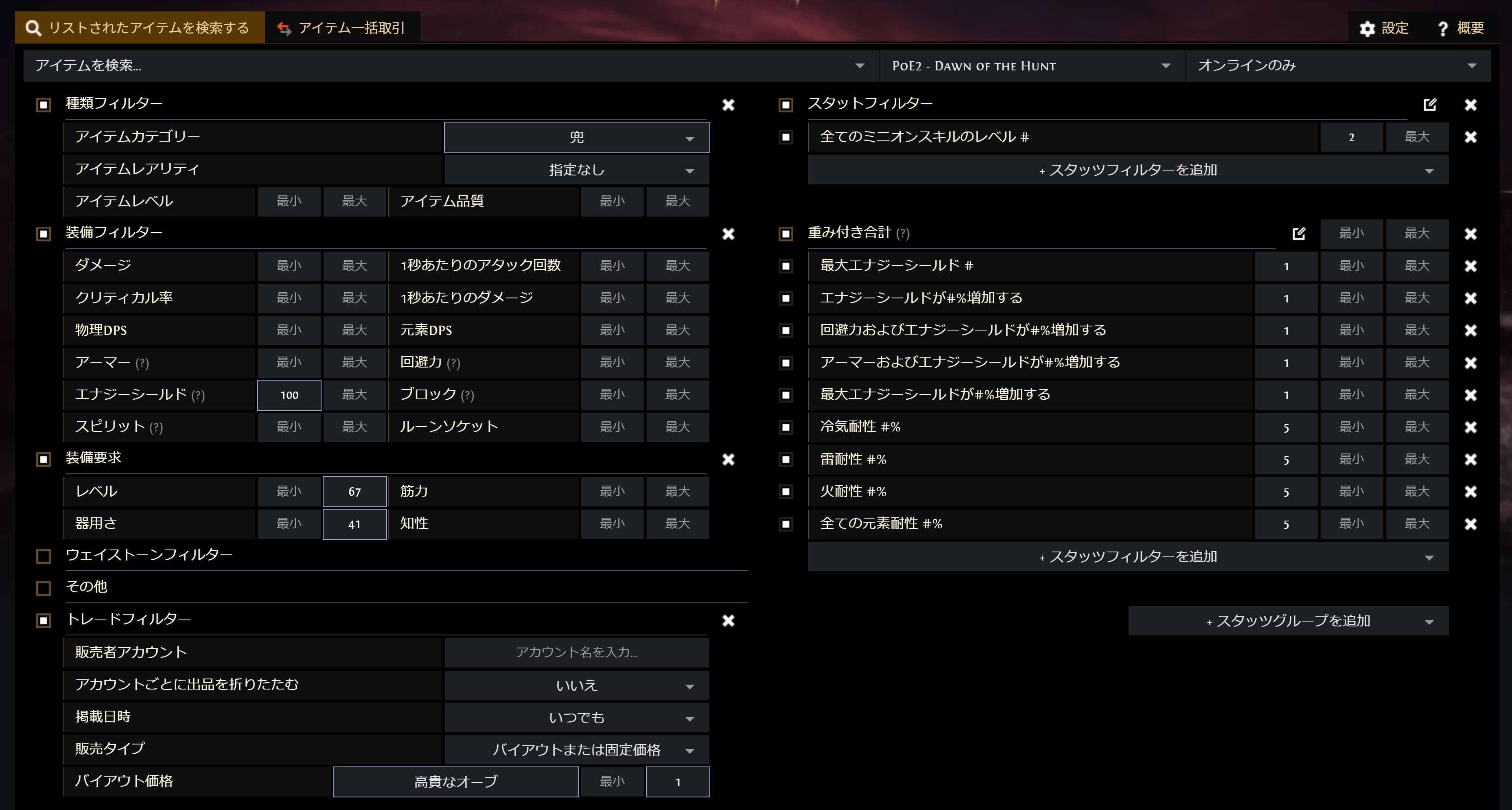 検索URL:https://jp.pathofexile.com/trade2/search/poe2/Dawn...