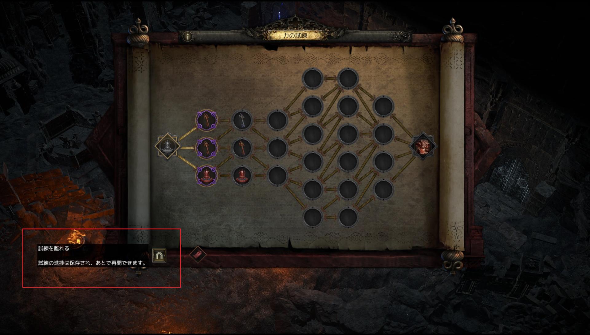 - 部屋の完了後、ポータルで帰還するのではなくマップ左下のアイコンから帰還するとセケマの試練の入場口まで戻れます